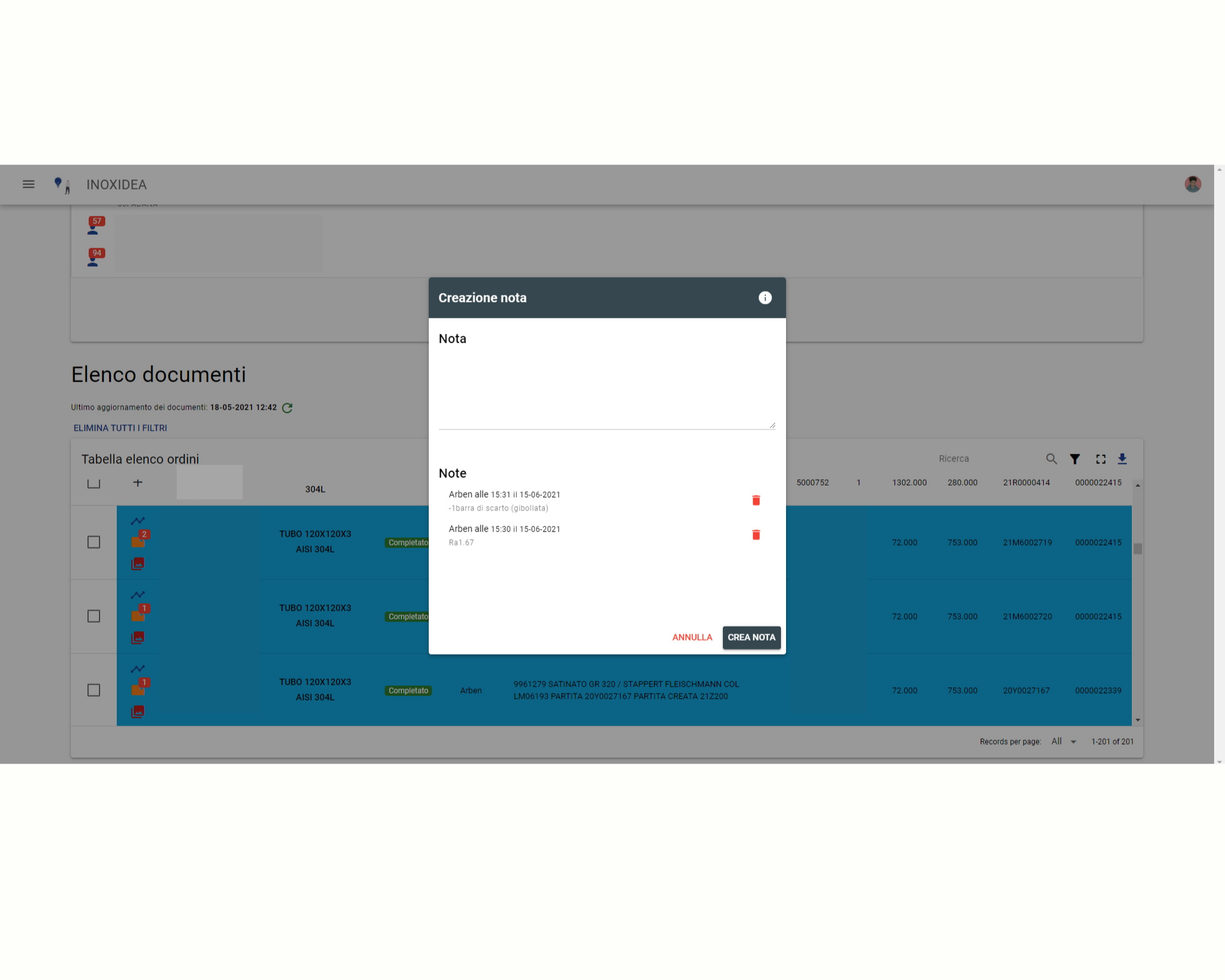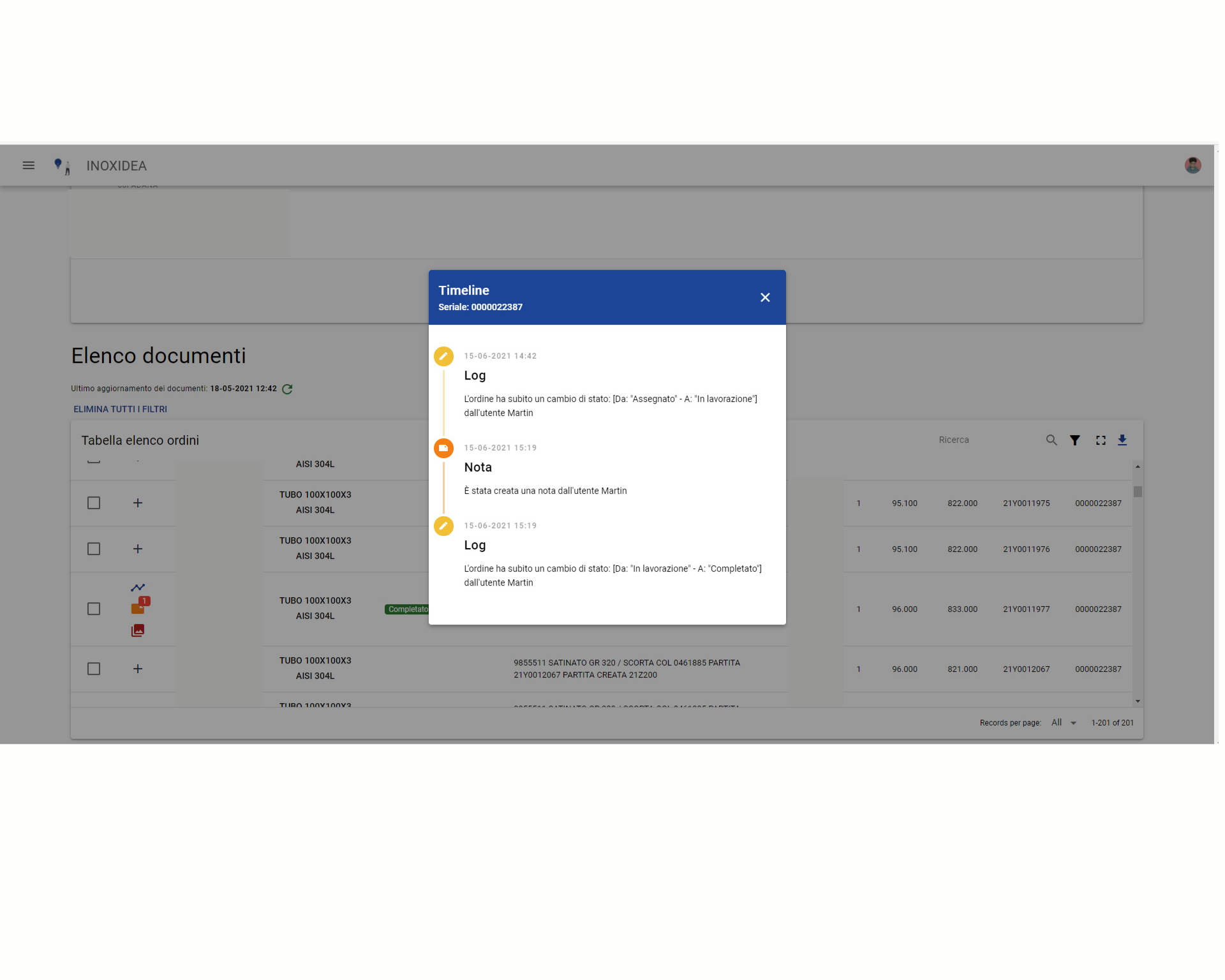 Inoxidea è un’azienda storica leader nella lavorazione dell’acciaio, un terzista che riceve il materiale da lavorare e lo rende lavorato a grosse aziende (come ad esempio la Marcegaglia); nel corso del tempo, questa complessità ha reso la gestione dei documenti e delle relative richieste da parte dei clienti, sempre più elaborate: dall’organizzazione dei DDT al controllo di entrata e uscita materiali.
